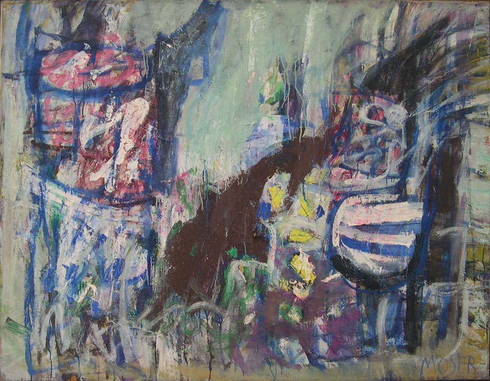 Né à Zürich en 1914, l’enfance de Wilfrid Moser est marquée par les tableaux au milieu desquels il vit, plus spécialement les Utrillo et les Rouault que son père vient d’acquérir. Un voyage en Italie lui révèle la simplicité grandiose des paysages toscans et le laisse émerveillé par la lumière des primitifs siennois. Quelques années plus tard, il découvre l’Espagne et le Maroc qui attisent son besoin de faire chanter la couleur et où il fait la connaissance de Nicolas de Staël. Moser s’installe à Paris en 1945. Présenté en 1952 par Louis Nallard à Jean-François Jaeger, il a été l’un des artistes les plus défendus par la galerie avec 14 expositions monographiques.